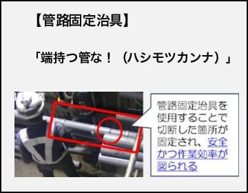 SYSKEN技術開発品 取付時間・材料の削減! 「番号札年度表記廃止」 作業時間の短縮・環境負荷軽減! 「突出し金物へ引込線固定方法の改善」 「安全な位置での交通誘導」「働き方の改善」を図る! 「無線式工事用信号機」 ローゼット2段取付金物を使用し、ムーズな調査・折衝・施工が可能! 「ローゼット2段取付金物の開発」 「作業性の向上」「作業の安全性向上」「ケーブルの損傷防止」! 「切管・割管時の既設管路固定治具」
