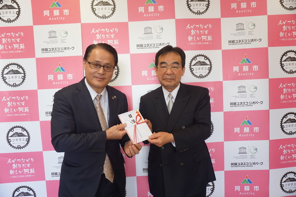 12月7日、阿蘇の生命資産の保全を目的とする「公益財団法人阿蘇グリーンストック」様へ寄付を行いました。