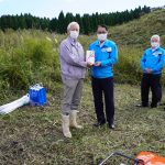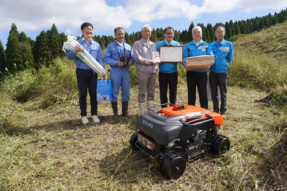 「公益財団法人阿蘇グリーンストック」所有の波野トラスト地にてラジコン草刈り機の寄贈を行いました。