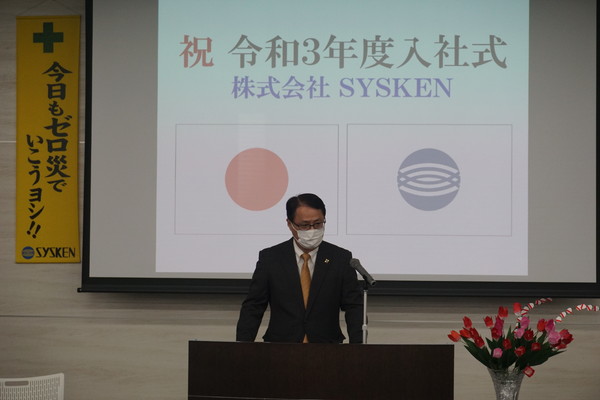 SYSKEN本社ビルにおいて、令和3年度入社式を執り行いました。