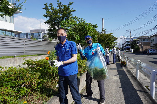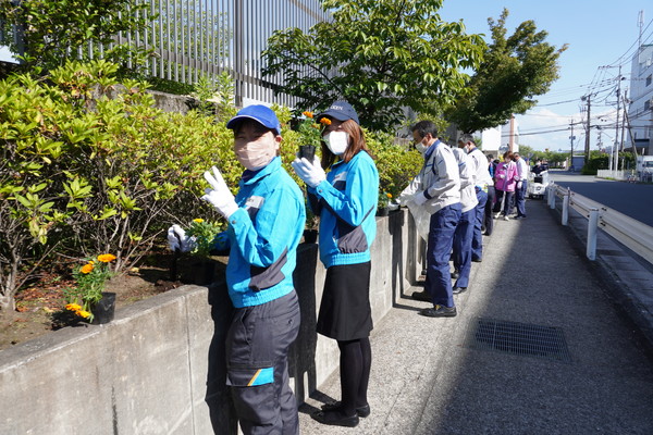 お隣の西部ガス様と共同で、本社に接している花壇に花を植えました