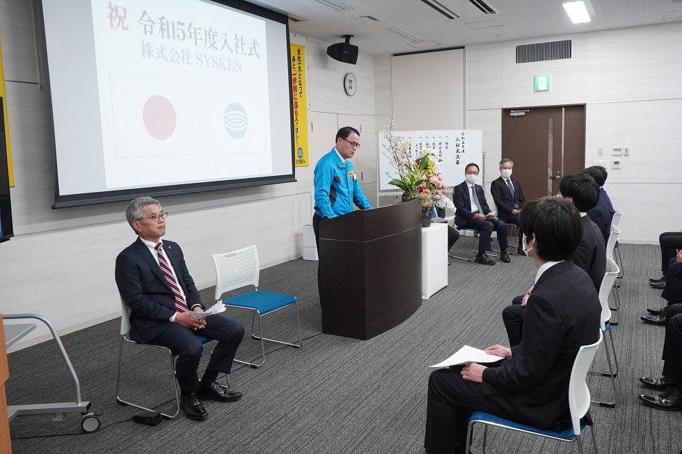 令和5年4月3日SYSKEN本社ビルにおいて、令和5年度入社式を執り行いました
