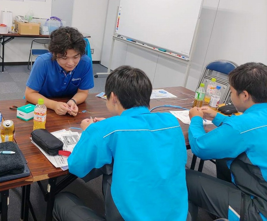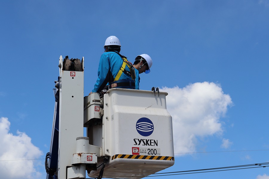 大分工業高校の学生を対象に、9月10日~13日の3日間、インターンシップを開催しました。 前年に引き続き、3日間のカリキュラムです。 それぞれ若手社員を中心に、以下のカリキュラムを行いました。 <1日目> ・オリエンテーション ・会社概要説明・職場見学 ・通信設備概要説明 ・携帯電話の繋がる仕組み ・高所作業車体験・光ファイバー接続・LANケーブル製作体験 <2日目> ・NTT設備見学:とう道・局内 ・ドコモ設備見学:基地局等 <3日目> ・現場見学:電柱新設・橋梁添架管補修 ・インターンシップまとめ 講師として参加した若手社員は、学生に対して熱心に、かつ距離感近く接することができており、 参加した学生からは、「なんでも優しく教えてくれて助かりました」と感想をいただきました。 ほかにも、「就職してみたいと感じました」とも書かれていました。 学生にとっても社員にとっても、貴重な3日となりました。 これを機にSYSKENや業界についてもっと興味を持ってもらい、次年度以降に繋がるようにしていきたいです。![]()