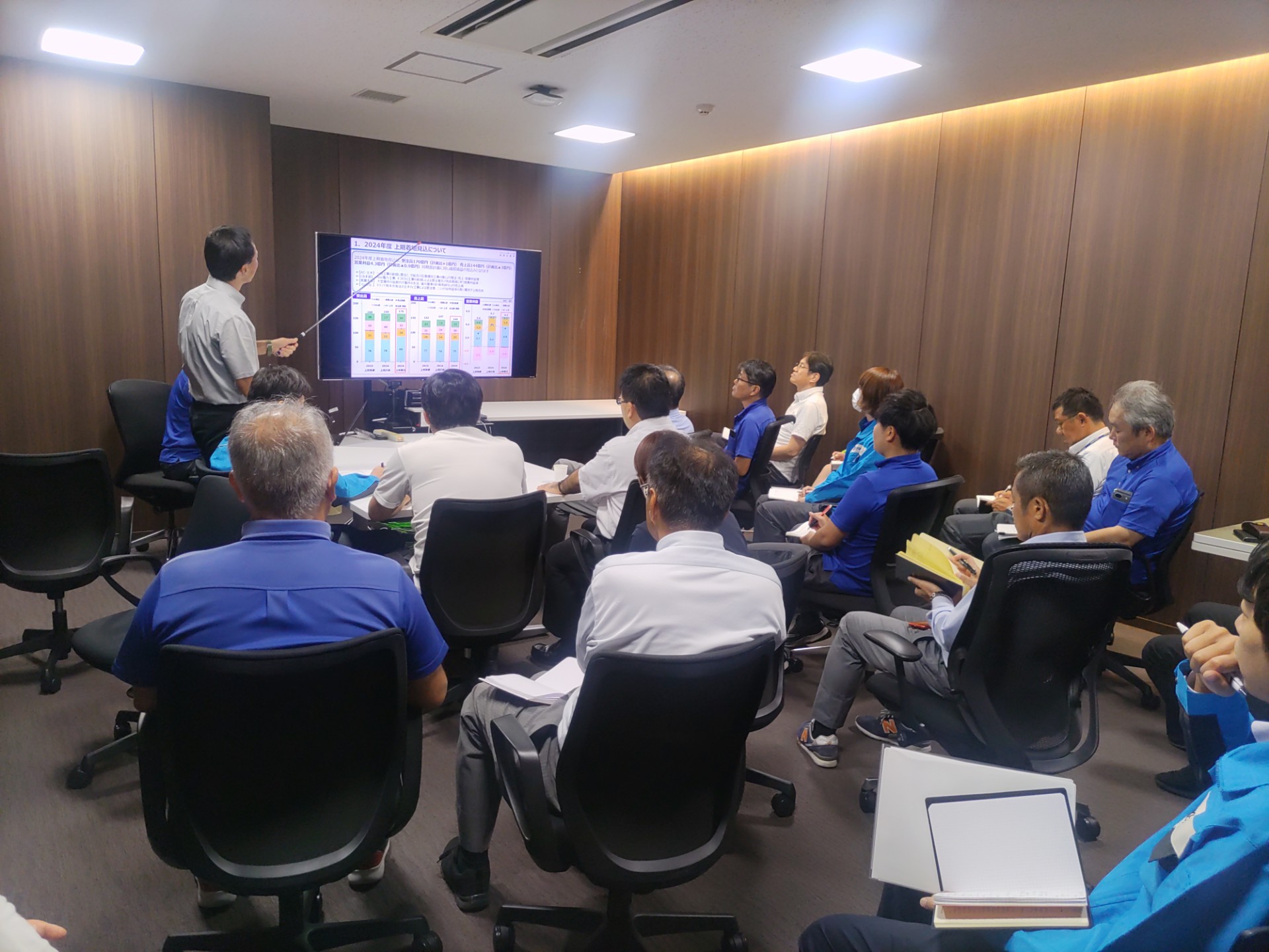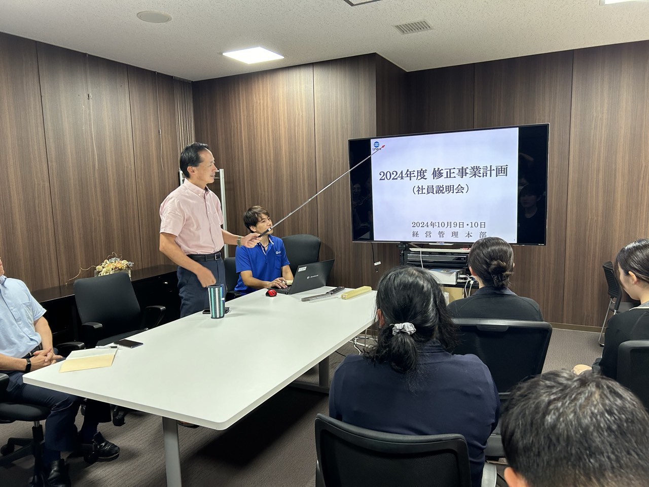 10 Oct 【経営管理本部】2024年度 修正事業計画社員説明会 経営管理本部の2024年度 修正事業計画社員説明会を開催しました。 岡園本部長より上期の振返りと修正計画の策定内容、 販管費削減の取組み状況についてご説明いただきました。 利益向上のために経営管理本部としてできることは何か、といった質問もあり、 課題を意識しながら日々の業務に取り組んでいるという姿が垣間見えました。 経営管理本部として、利益向上、業務改善・効率化の各種施策に取組み、 他部門に伍する組織としてパフォーマンスの向上に努めます。 下期も引き続きご安全に!