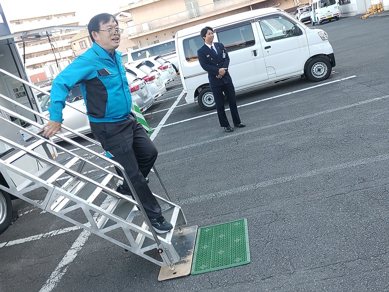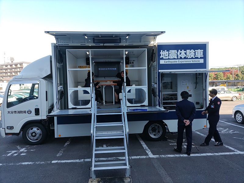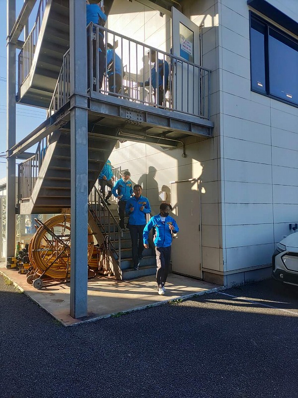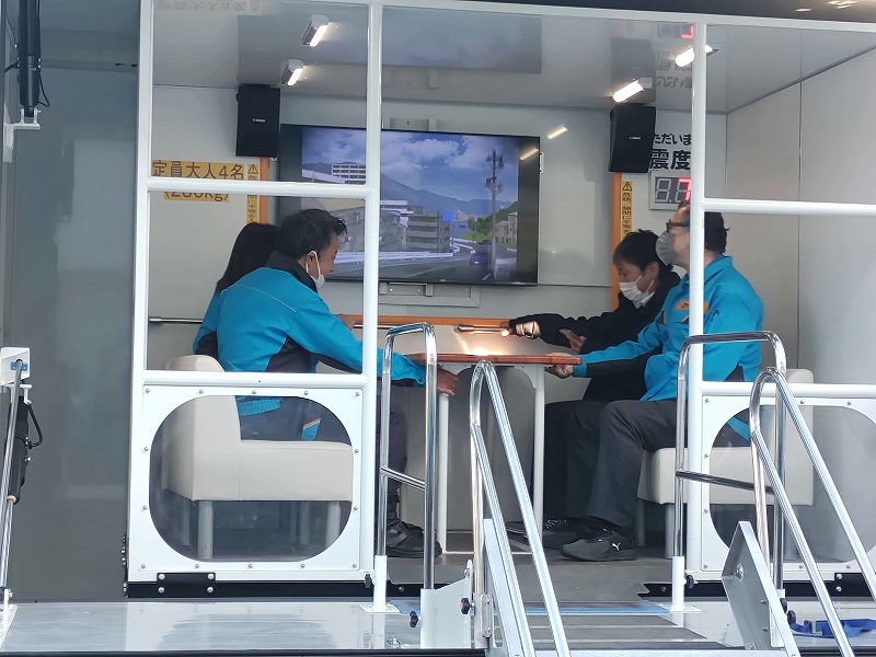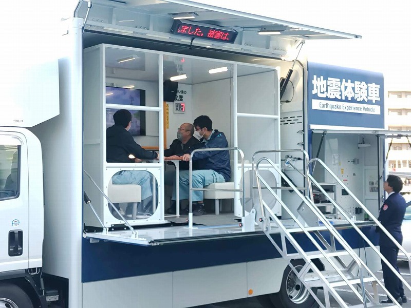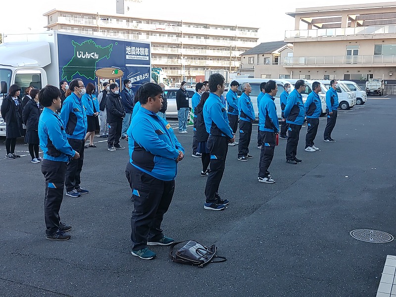 大分支店内の防火避難訓練を行いました。 今年度は大分中央消防署の岩切様、渡邊様に来ていただき、 社外の専門家の目線によりご指導いただきました。 3階給湯器付近からの出火を想定し、 非常ベル及び館内放送による避難指示、避難誘導班による誘導訓練を実施し、 全員の避難を約3分30秒で無事に終え、前年に比べて大幅に時間を短縮できました。 避難後には中央消防署の岩切様より講評があり、避難の迅速さについてお褒めの言葉をいただきました。 また、「燃焼のもととなる酸素の流入を防ぐため、避難時には建物の入り口を閉めること」との注意喚起があり、 新たな気付きを得たとともに、火災被害を最小限に抑える意識が高まったと感じています。 その後、新たな試みとして、地震体験車による地震体験を行いました。 東日本大震災、熊本地震を再現した震度7程度の揺れを、協力会社の方を含む大分支店の40名が体験しました。 実際に地震体験車に乗車された方からは、 「貴重な体験ができた」「日ごろから震災対策を行う重要性を感じた」 などの感想をいただき、充実した訓練となりました。 大分支店は、今後もこの訓練を活かして、防火・防災に努めていきます。