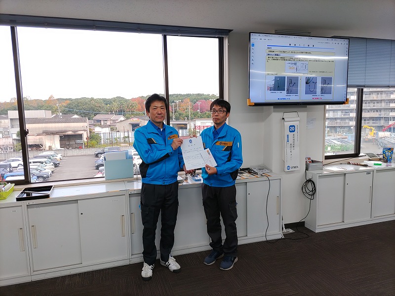 21 Nov 【大分支店】3S提案に対する表彰 大分支店にて、3S提案の表彰を行いまいた。 提案内容:切断配線クリート工法の統一 提案者: 大分支店 設備部 アクセス部門 社員 審査結果:4級 受賞された社員からは、 「大分支店でも3S提案を積極的に行っていきたい」 との決意表明をしていただきました。 大分支店では、3S提案活動を継続してまいります。