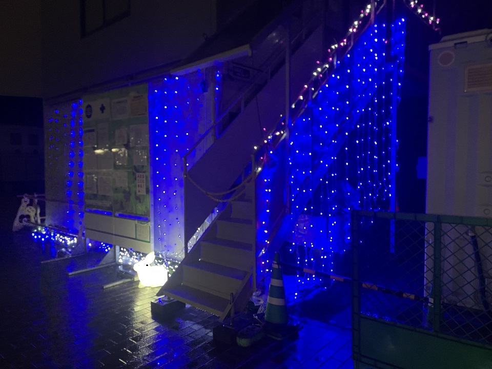 アクアドームでは現在、グループ会社であるSYSKENテクノとJVを組んで音響設備改修工事を実施中です。 そこで工事成績点の高得点を目標に、現場のイメージアップに取り組んでおります。 今回取り組みの一つとして、現場事務所にイルミネーションの取付を行いました。 アクアドームへお散歩に来られる方、帰宅ルートで通られる方などに好評です。 2月いっぱいまでの点灯を予定しておりますので、近くを通られた際はぜひお立ち寄りください! ※点灯時間:18:00~21:00 【工事概要】 案 件 名:(長寿命化)熊本市総合屋内プール音響設備改修工事 発 注 者:熊本市 JV名 称:SYSKEN・SYSKENテクノ特定建設工事共同企業体 工 期:2024年7月24日 ~ 2025年10月17日