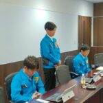 2024年度の経営管理本部長表彰の表彰式を行いました。 (本部長表彰受賞者) 熊本支店 アクセス部門 1名 施工本部 アクセス部 1名 CB本部 ビジネス推進部 1名 CB本部 ドコモビジネス部 1名 CB本部 キャリアビジネス部 1名(筑紫野ビルよりZOOM参加) 営業本部 営業企画部 1名 (表彰内容) 8月から9月にかけて開催された夏季1Day仕事体験では、熊本と福岡の2会場で3コース (通信系、モバイル系、総合設備系)に分かれ、合計38名の学生が参加しました。 その際、インストラクターを務めて学生の志望度向上に寄与したため 経営管理本部長表彰としました。 (上村社長コメント抜粋) 学生が口々にSYSKENの1Day仕事体験が良かったという旨の話をしていた。 大変感謝しております。 (岡園本部長コメント抜粋) 通常の仕事に追加して、採用活動に対して協力いただいたことに感謝します。 送り出してくださった各本部の皆様にも感謝しております。 (受賞者コメント) 自分自身が就活生の時に不安を感じていたので、学生の手助けに繋がってよかった。 働く事をイメージしてもらえるようこれからも努力したい。![]()
