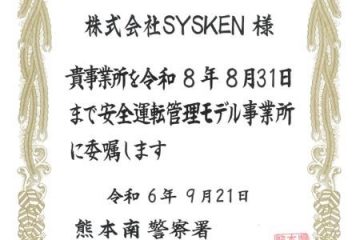 【本社】「安全運転管理モデル事業所」に指定されました
