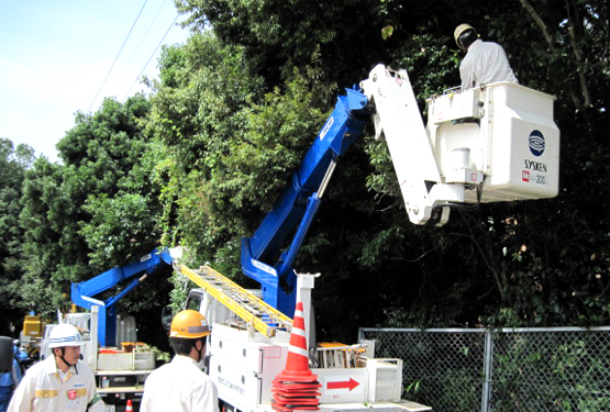 27 Jul 長崎地区において、地域貢献活動に参加しました 7月27日に古賀小学校、8月3日に緑丘小学校、8月19日に大島東小学校において、NTTグループの地域貢献活動に、弊社長崎アクセスセンタから参加し、バケット車を使用して伐採作業を行いました。