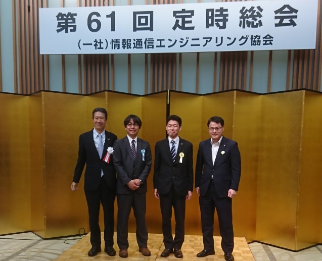 7 Jun 情報通信エンジニアリング協会賞・技術賞・SKY選奨を受賞 ・第38回情報通信エンジニアリング協会賞 板井 次男 様(元専務取締役) ・第36回技術賞 宮本 務 様(施工本部 アクセス部 担当課長) ・第31回SKY選奨 山本 和彦 様(施工本部 アクセス部) 3名の方が受賞されました。おめでとうございます。 『情報通信エンジニアリング協会賞』は、情報通信インフラ構築の発展に大きく貢献された方に授与されるものであります